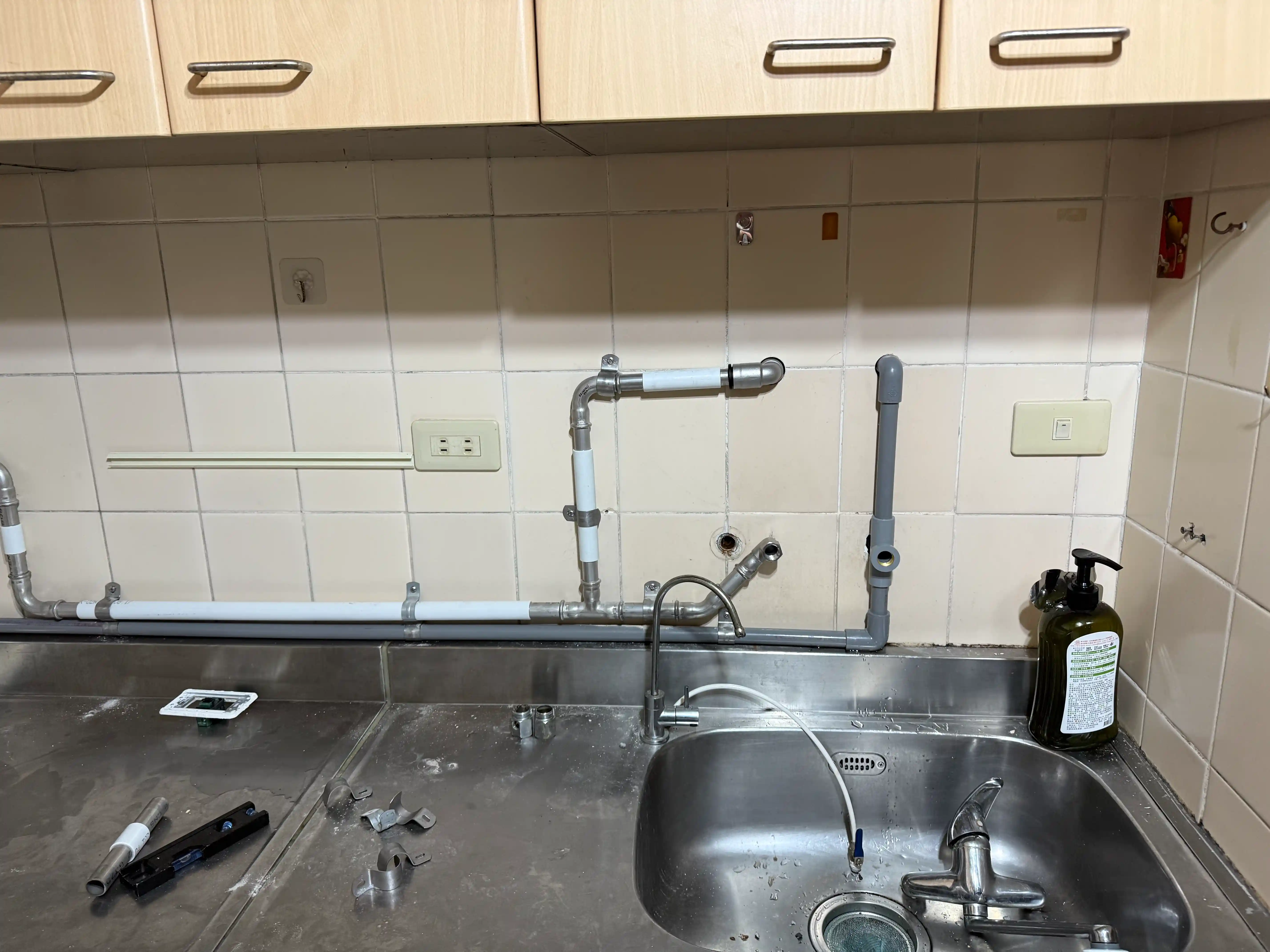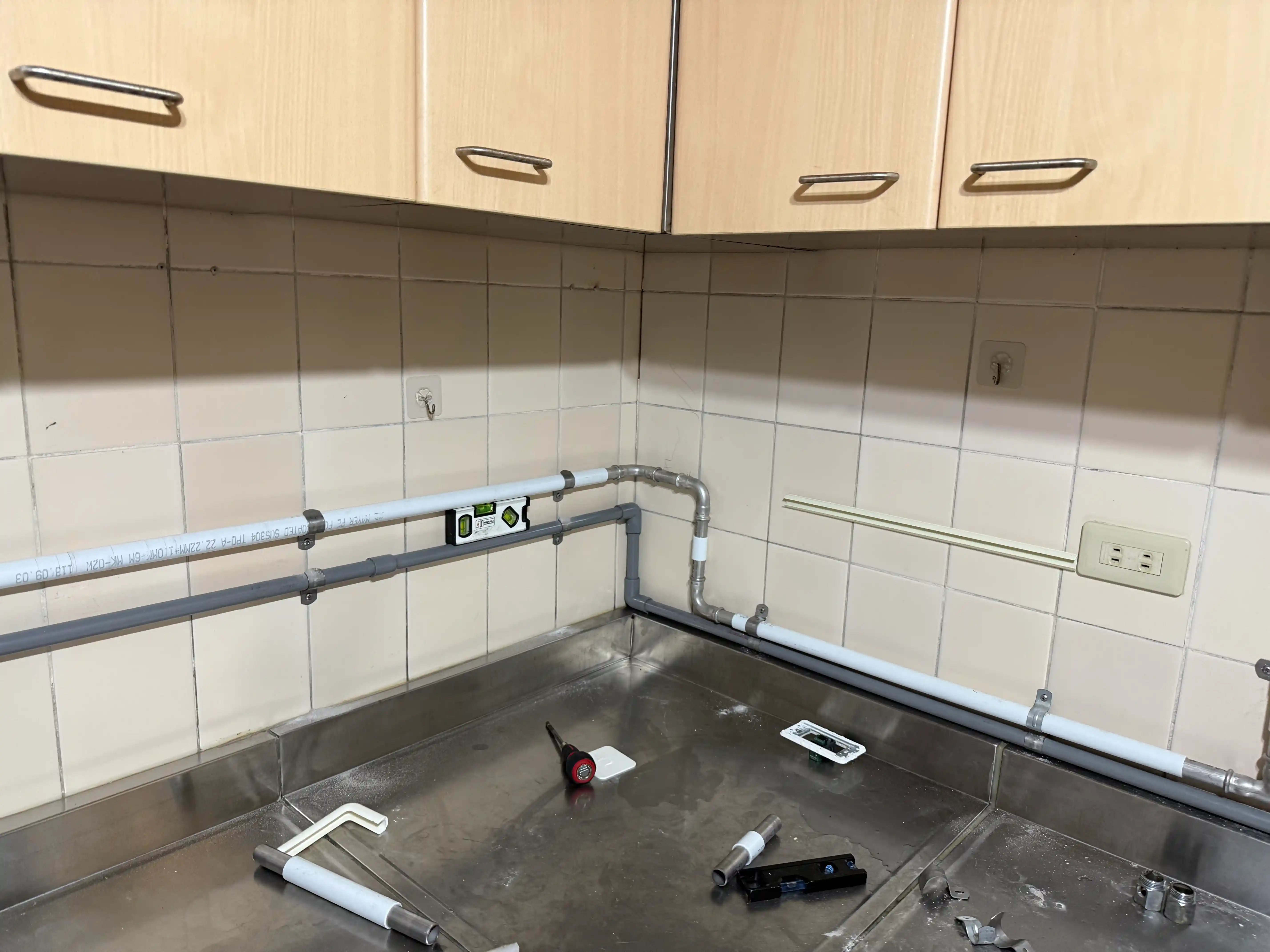 工程地點 台北市大安區 問題描述 老舊房子因年久失修管路生鏽嚴重 造成水管阻塞壓力減弱 處理方式 全室重新配置冷熱水管 結果說明 水壓恢復正常,業主接受明管配置,主打施工快速,不破壞房屋結構,費用CP 值高,若有發現冷熱水管漏水或阻塞,均可使用此工法
